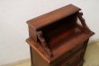 引出し前面の象嵌や足下の彫刻など、とても丁寧に作られた小ぶりな収納棚。