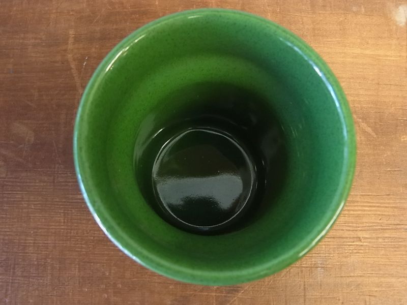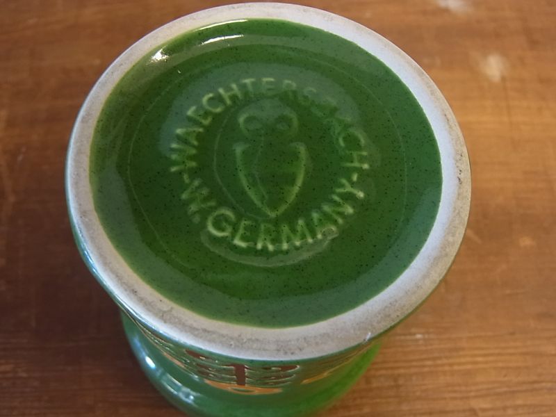 緑地にオレンジ色のお花模様がレトロで可愛い器 西ドイツ製です。