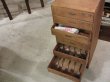 連続する引出し・ネームプレート・使い込まれた木質。。