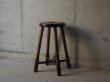 座面がやや小さく少し背が高めでスマートな印象の古い木製スツール。
