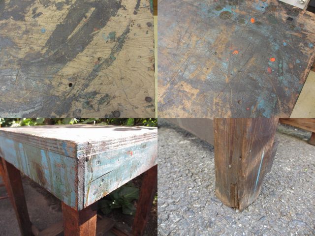 レトロ 青い古木の作業台(2) 机 テーブル インダストリアル ガーデニング