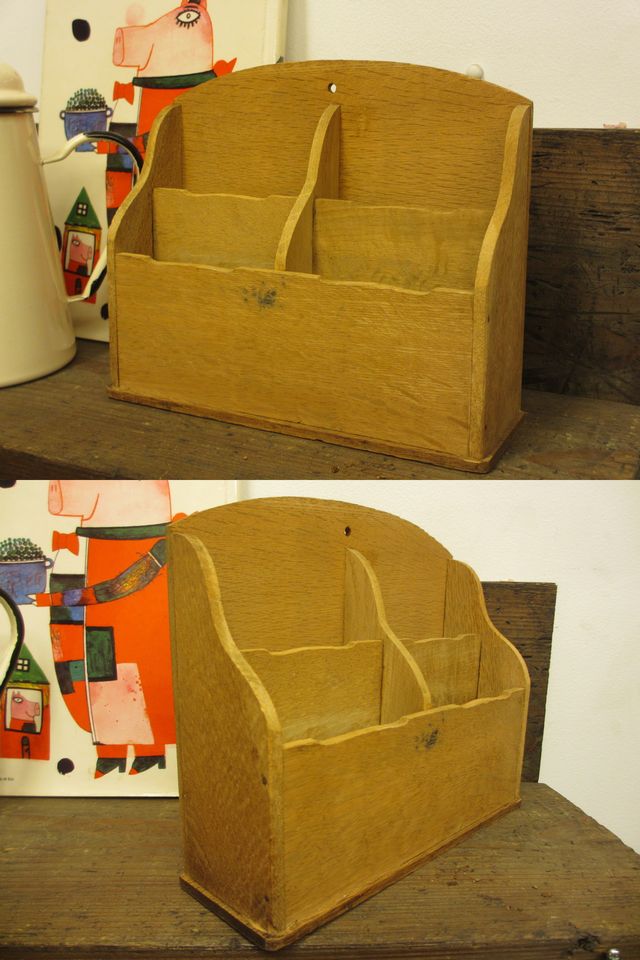 レトロな木製カードホルダー ペン立て 楢材アンティーク