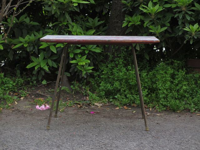 カラフルに絵の具がのった天板のサイドテーブル(1) [戻る]