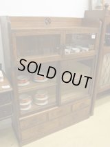 レトロ モールガラスの収納棚 食器棚 アンティーク