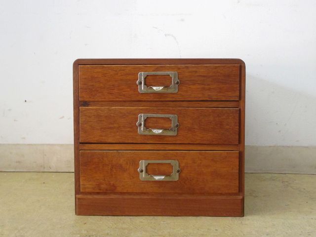ホームチェスト・サイドボードアンティーク 小ぶりなナラ材3杯小引出し ネームプレート付