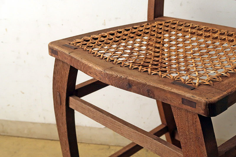 籐編みの座面に切れている箇所ありますのでメインの椅子としてのお使いにはオススメはしません。