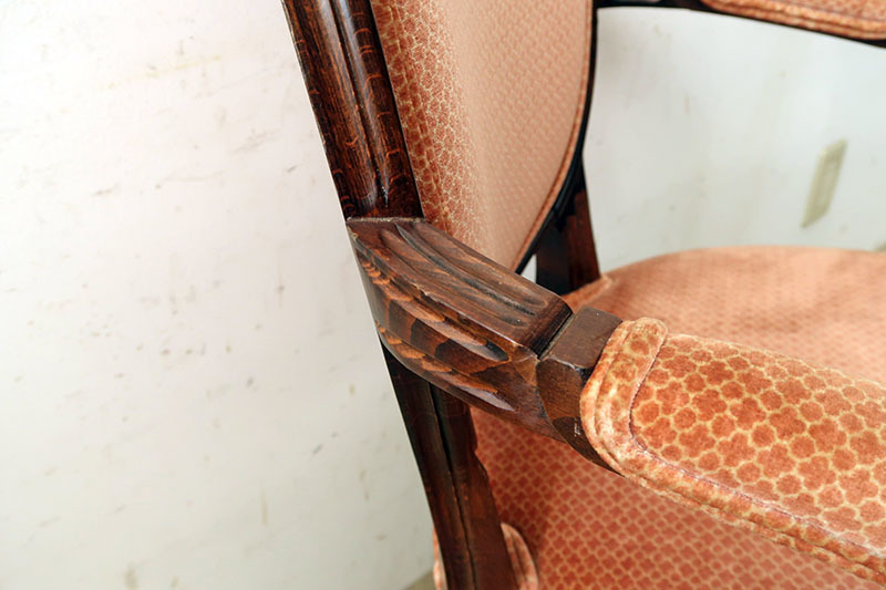 オレンジがかったピンクの張り地がレトロで良い雰囲気です。