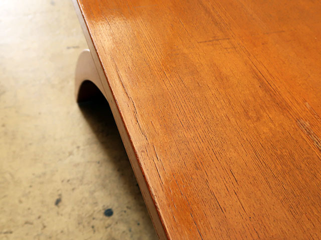全体的に合板の痛みがありますが、現状テーブルとしての使用に問題のあるほどのダメージはありません。