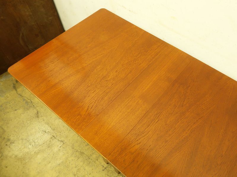 シーンに合わせて天板を片方だけ閉じたり両方開いたり、現代の住宅事情にもマッチした実用性のあるテーブルだと思います。