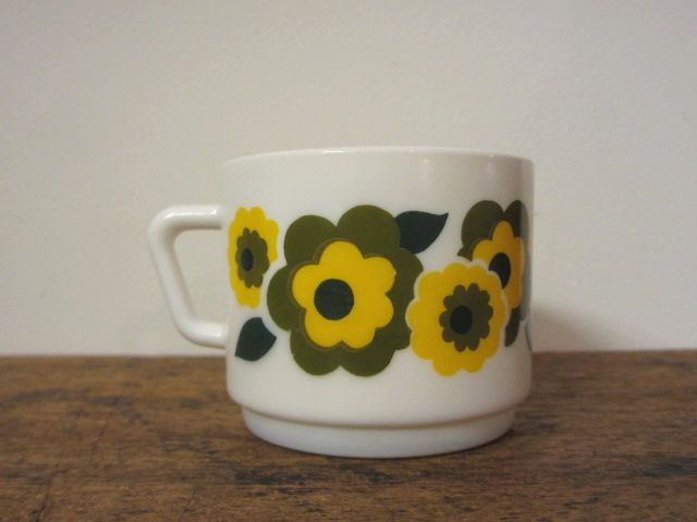 ホーム食器・グラスフランス arcopalアルコパル社 緑のお花のカップ