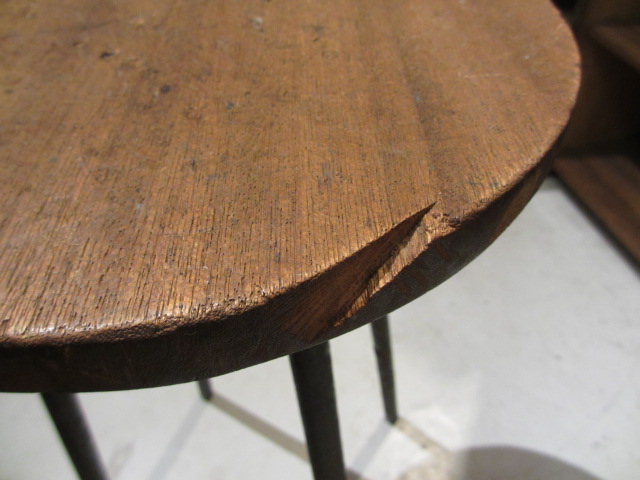 座面にキズ・カケ・虫食い跡、鉄脚部分にサビ等あります。