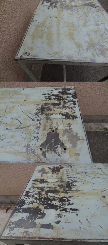 日本の工場で使われていた古い鉄製の作業台です。