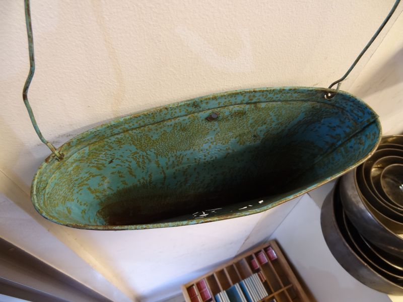シャビーなブリキの壁掛けバケツ