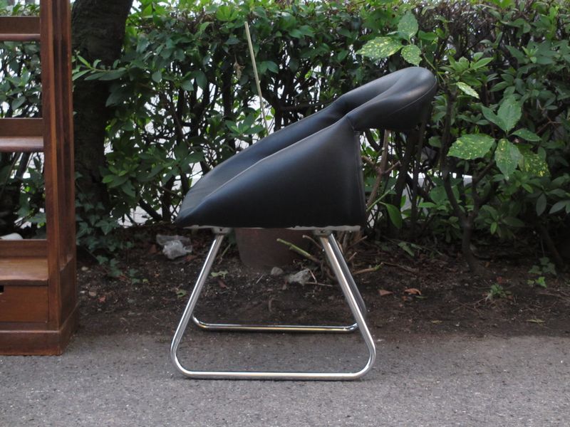 マットな黒い合皮のイージーチェア。