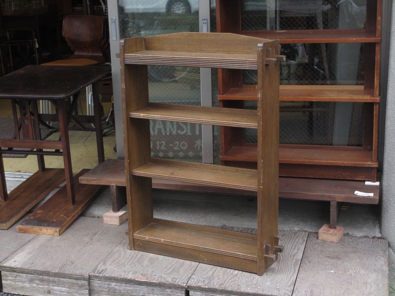 ホーム本棚・キャビネット昭和レトロ 小ぶりなラワン無垢材の楔本棚 ブックシェルフ