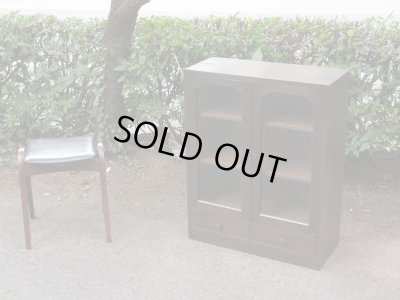ラワン無垢材が使われたつくりの良いガラス本箱。
