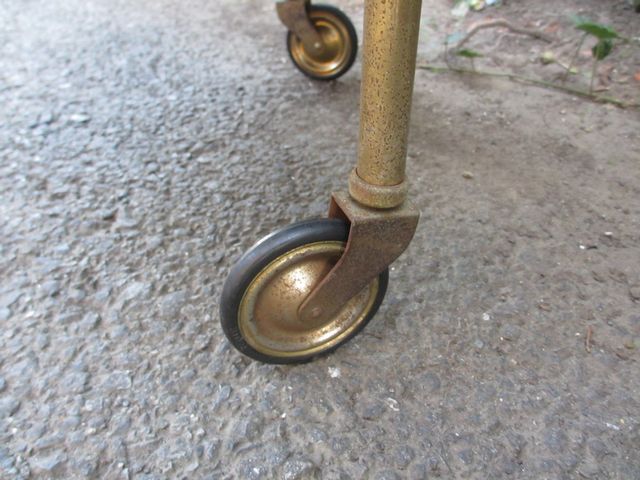 ゴールドのフレームに漆黒のガラス板がモダンな印象のティーカート。