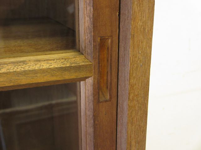 ホーム本棚・キャビネットヴィンテージ ラワン無垢材のガラス戸棚(1)