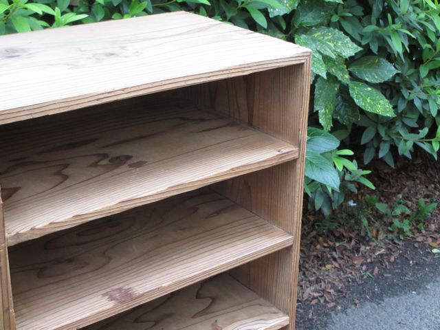 これぞ古道具といった乾いた木質の古い棚。